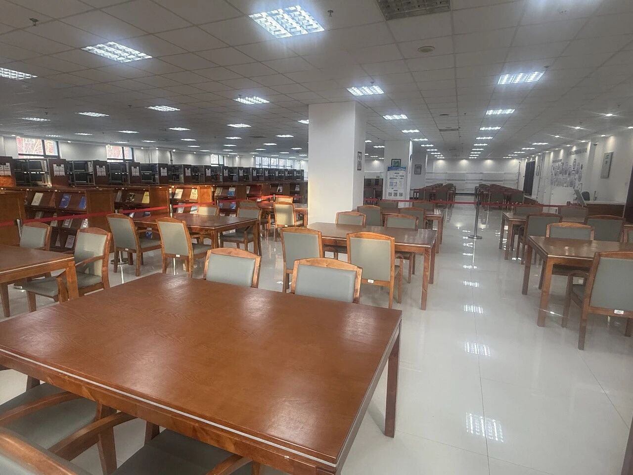 图书馆对馆内各楼层借阅室、报刊阅览室、自修室、公共自修区域及信息共享空间开展了全方位清洁工作。书架被擦拭一新,自修室桌椅摆放得井然有序。步入馆内,各区域窗明几净、静谧祥和,为广大读者营造了温馨雅致的学习氛围。